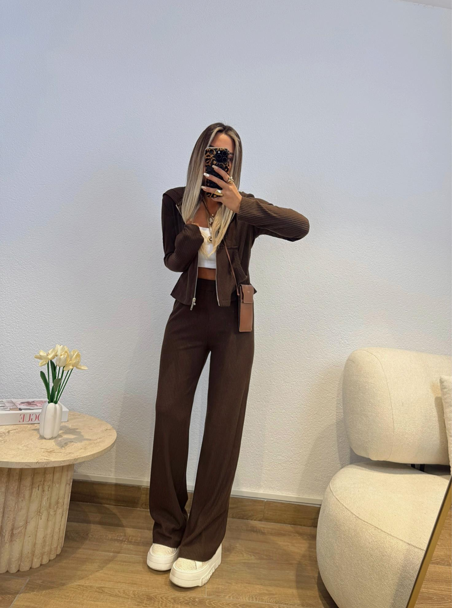 Kapişonlu Kahve Triko Takım