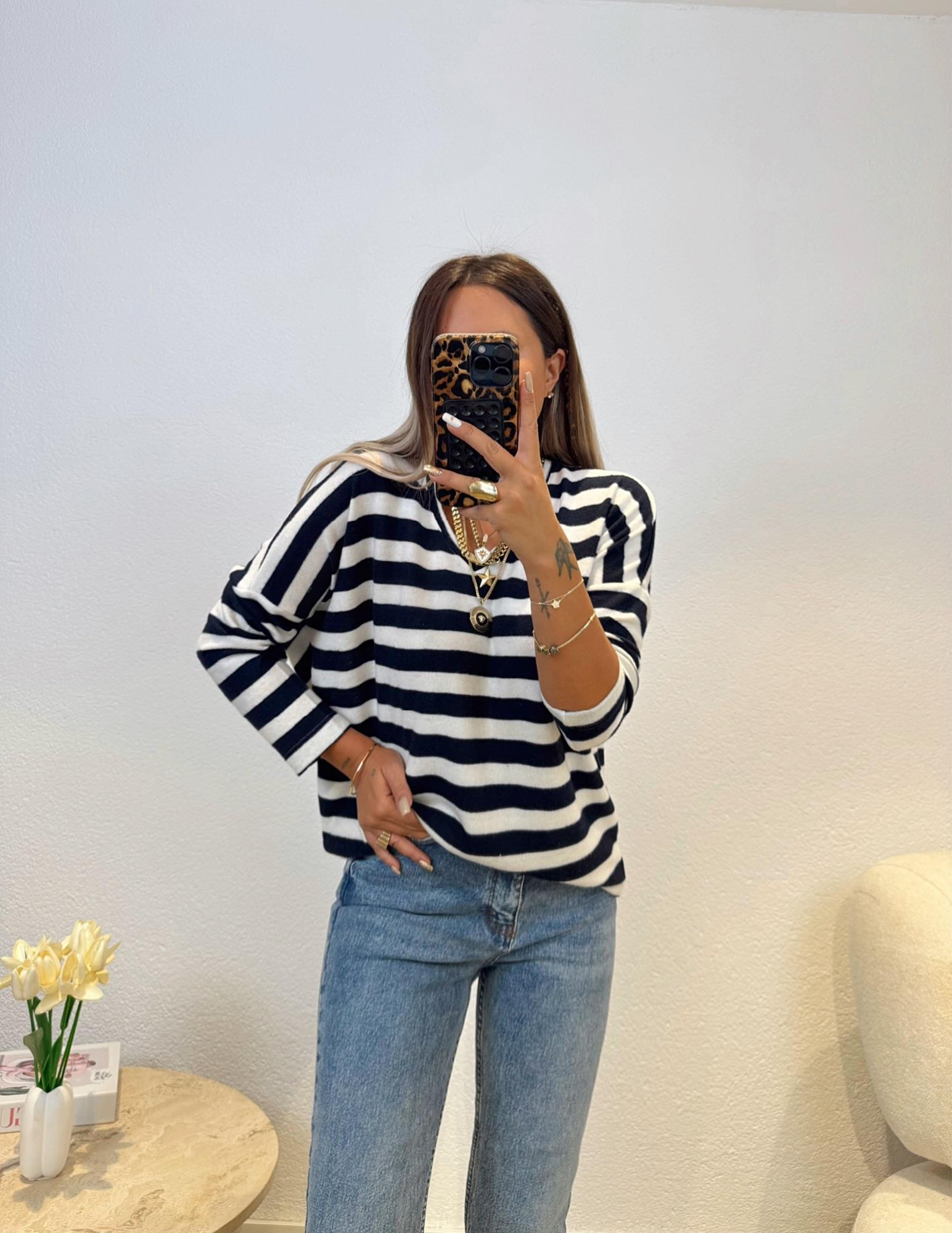 Laci Çizgili V Yaka Yumoş Basic Triko