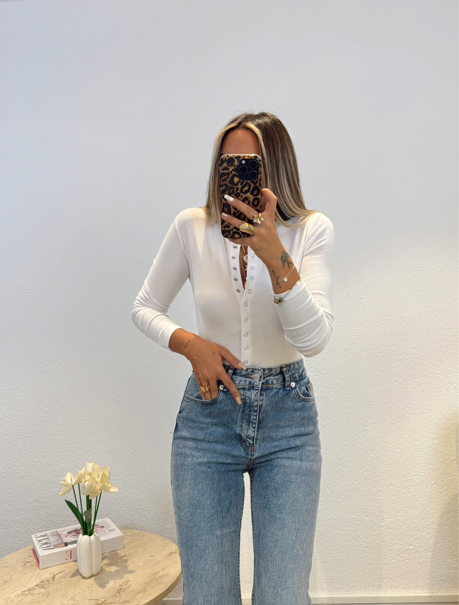 Pamuklu Seri Çıtçıtlı Beyaz Badi