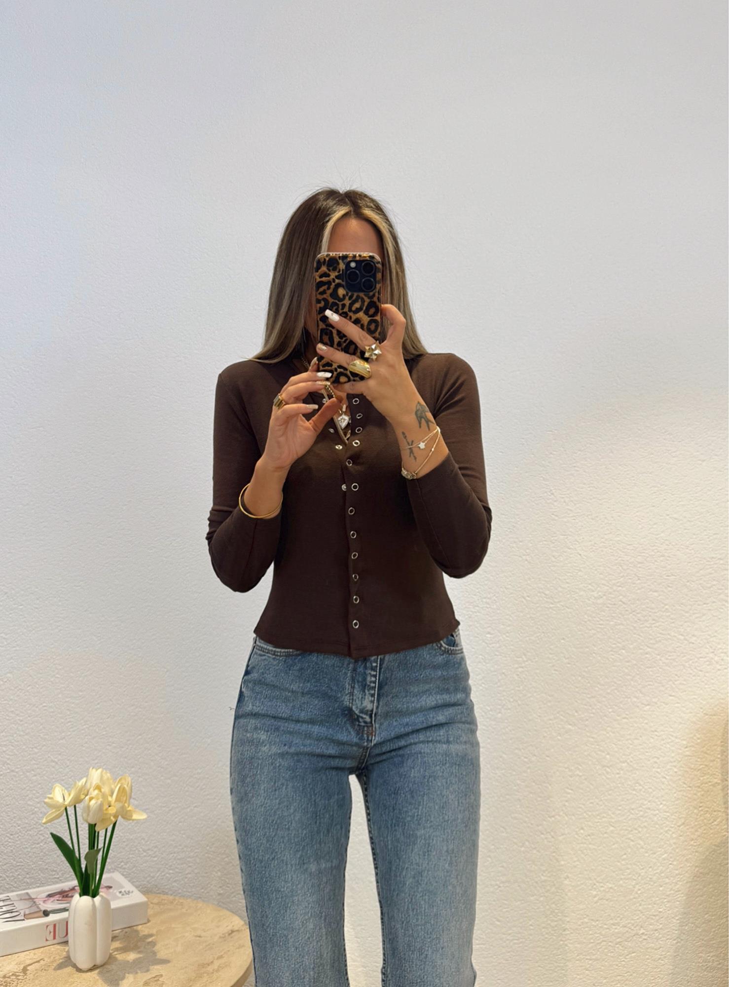 Pamuklu Seri Çıtçıtlı Kahve Badi