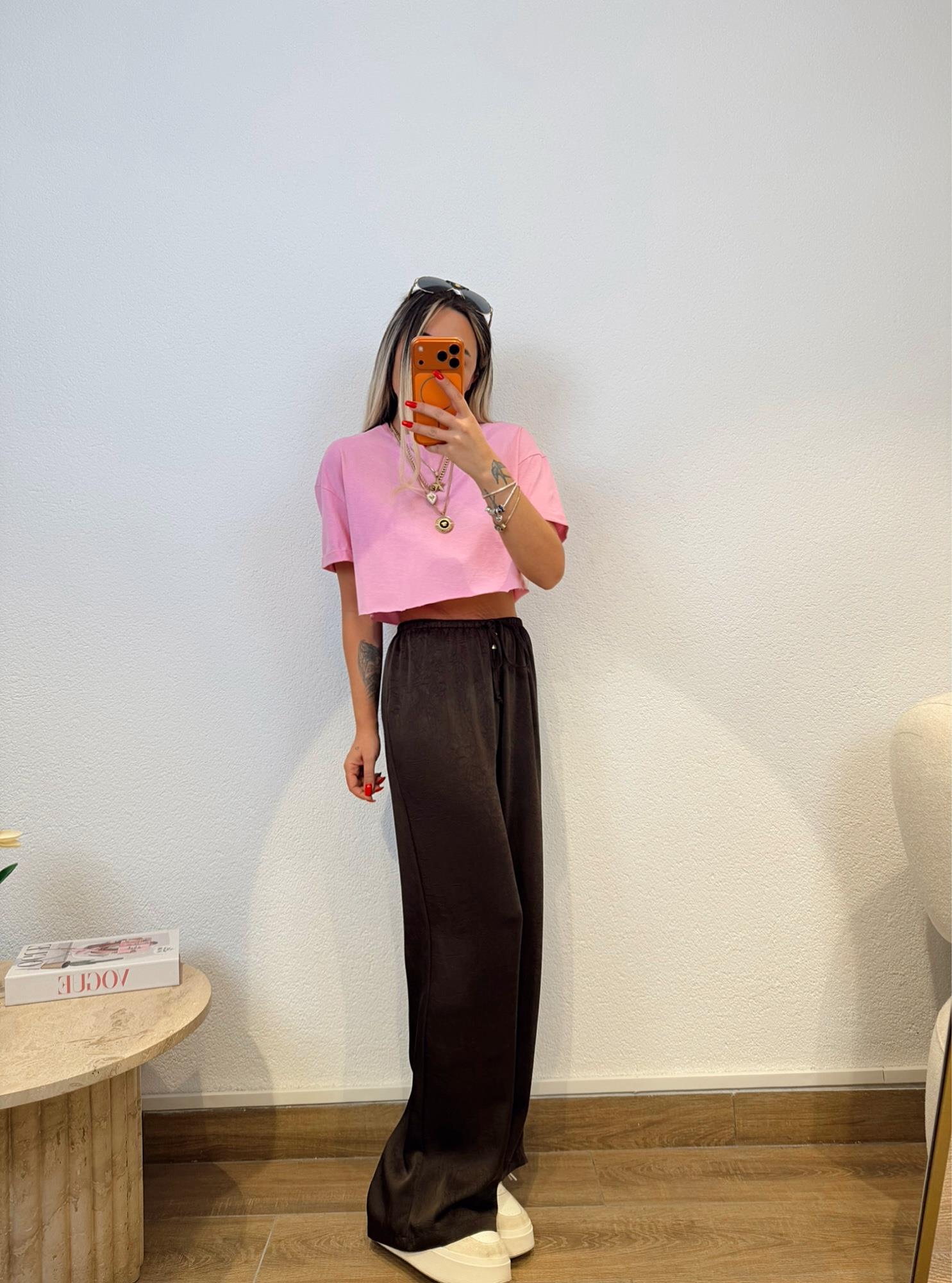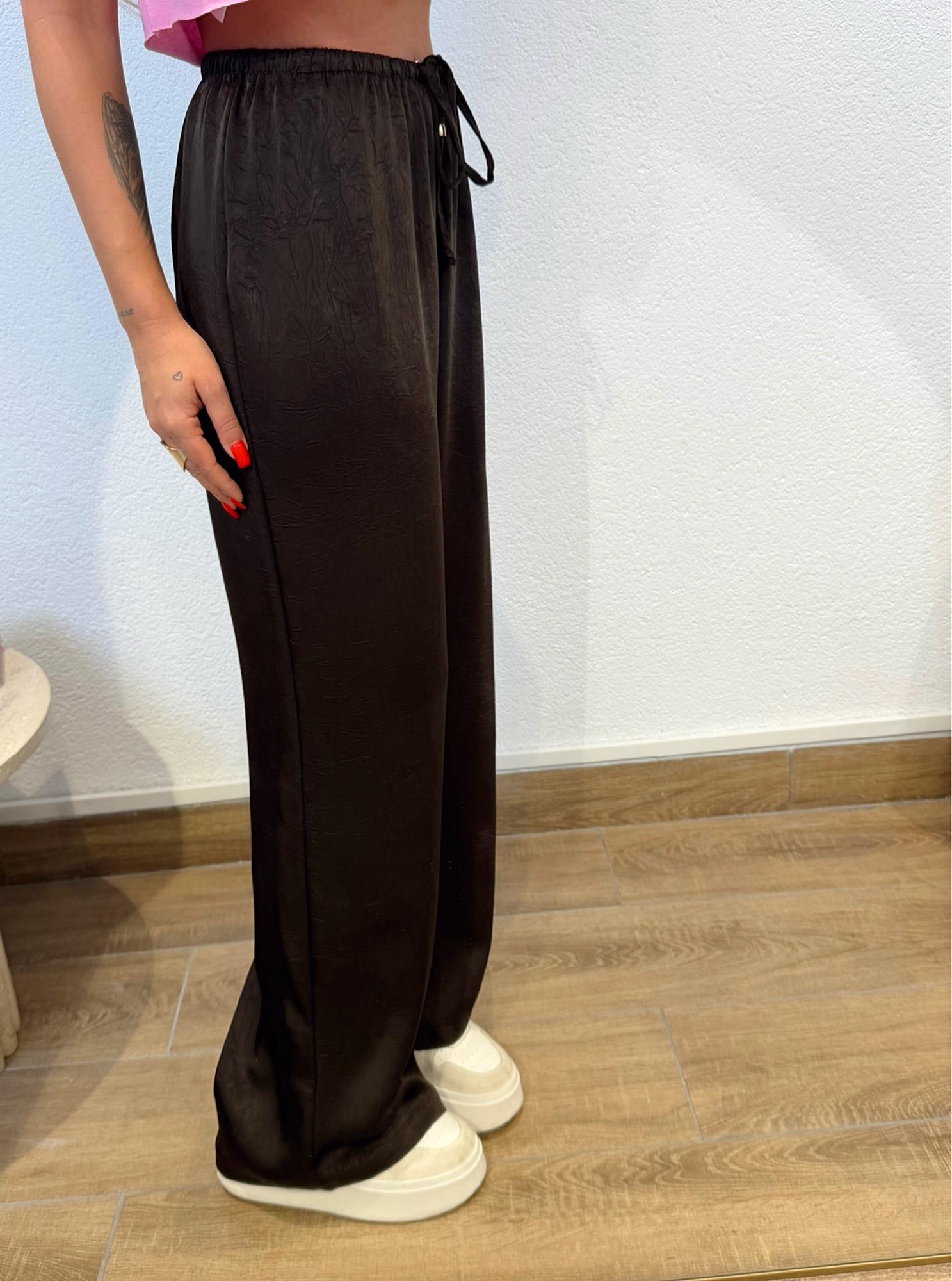 Premium Kendinden Desenli Saten Kahve Pantolon