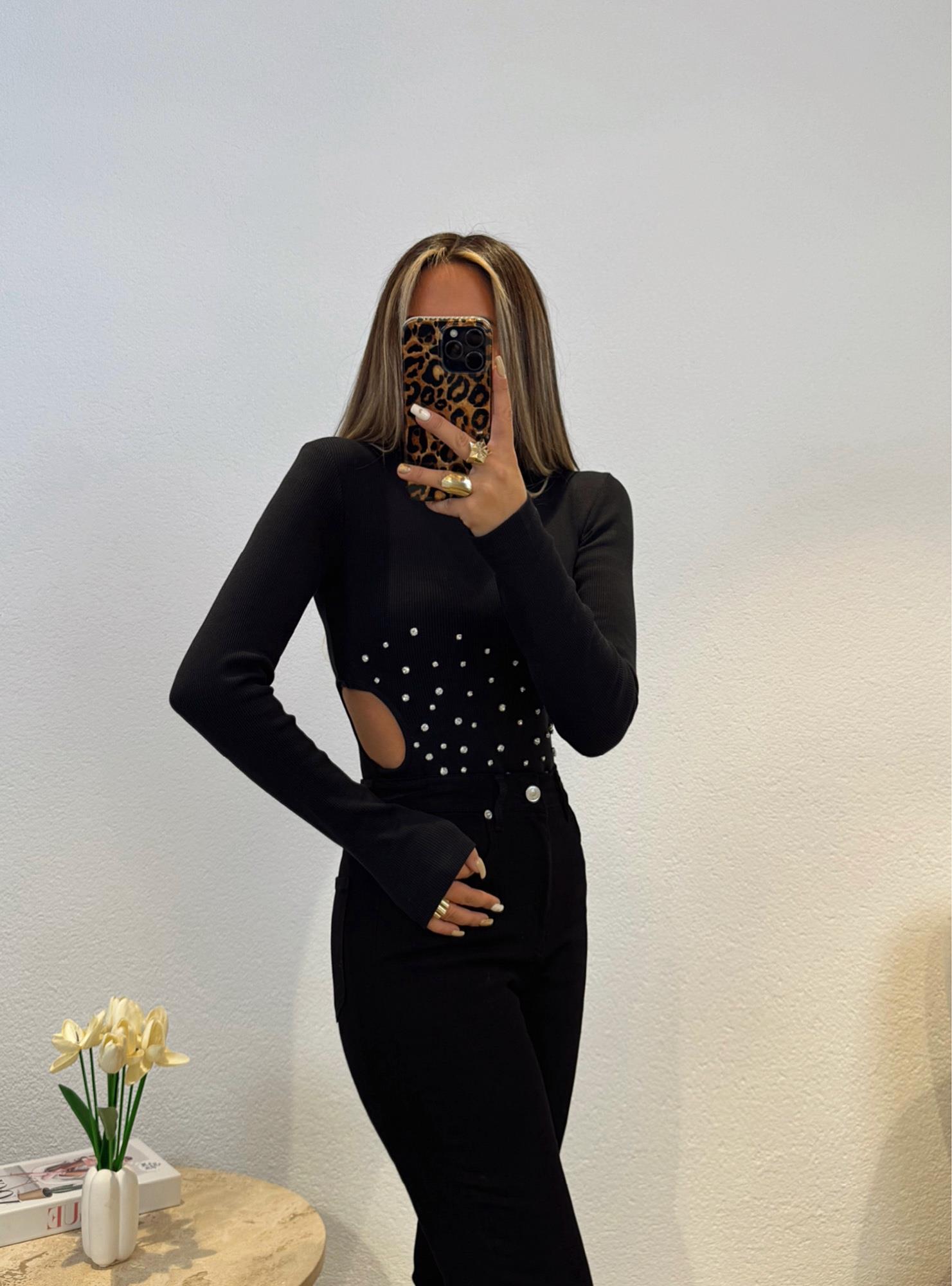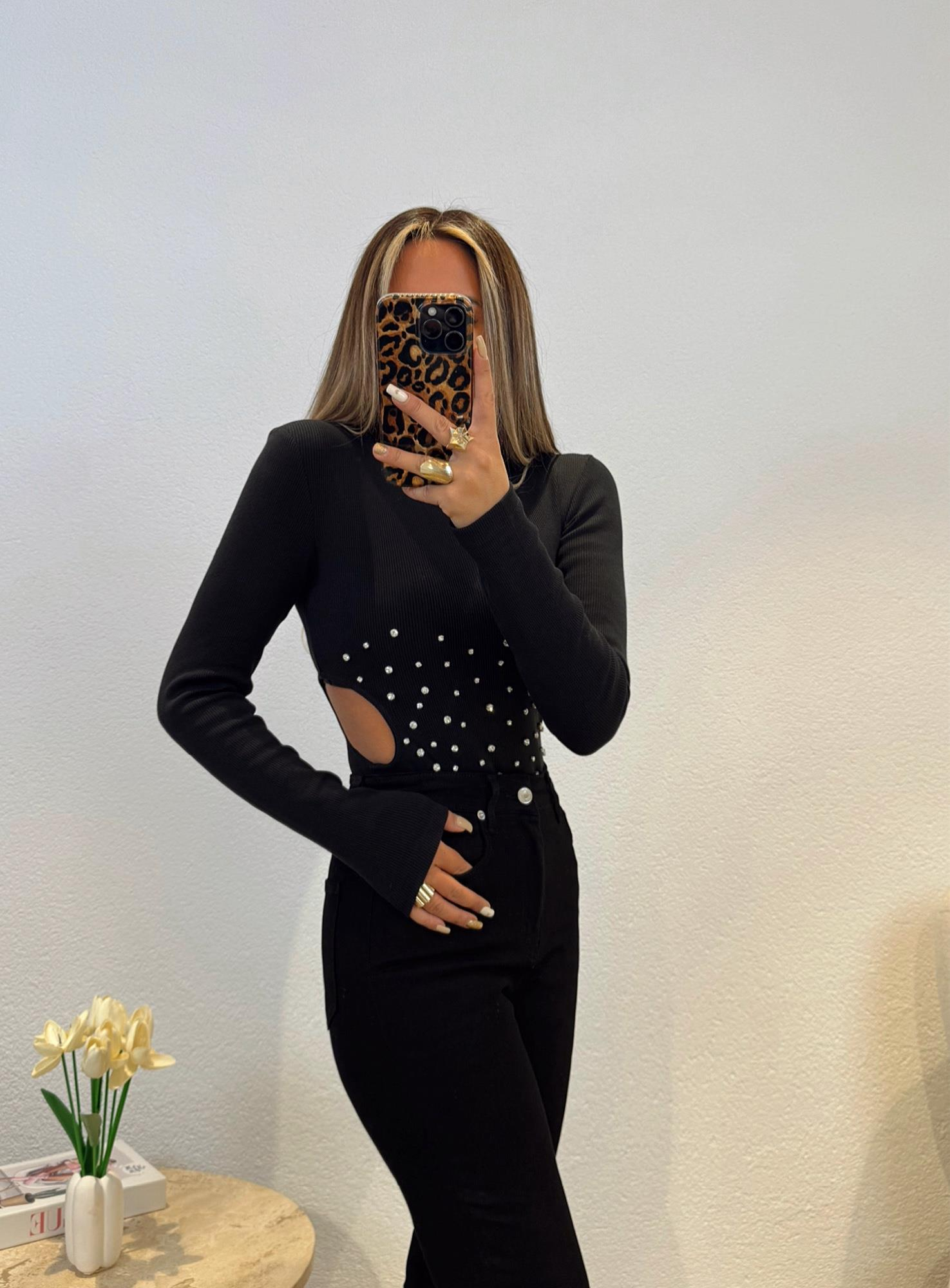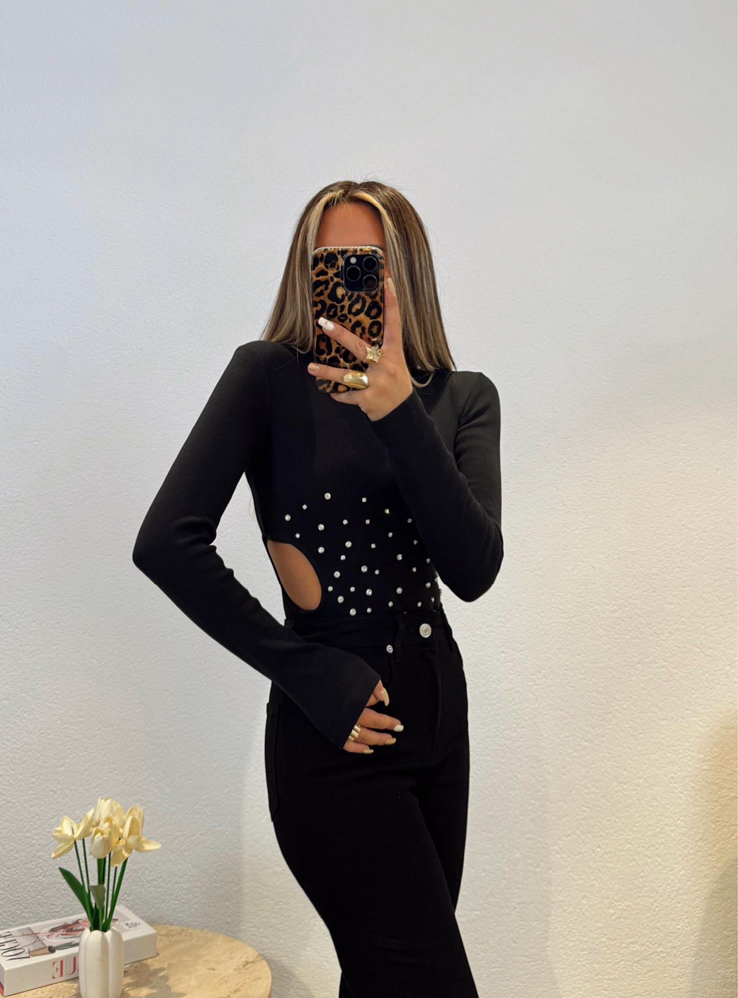 Z.a Bel Dekolteli Taşlı Bodysuit